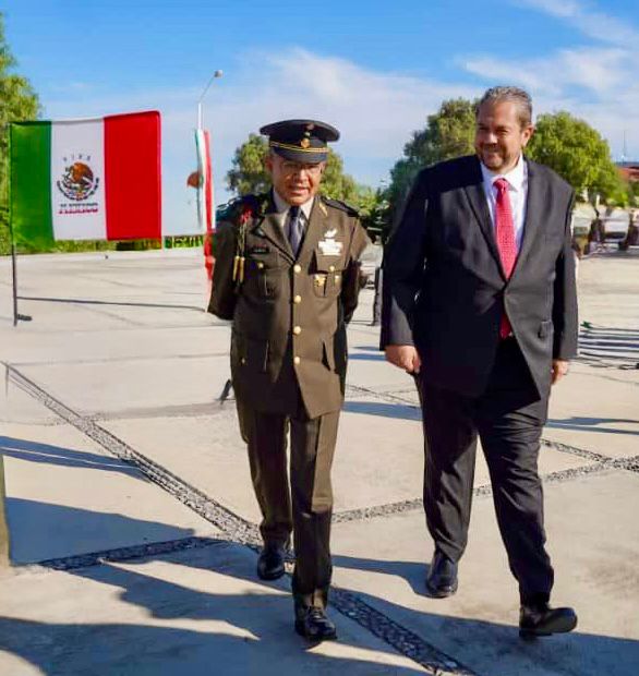 Ramos Arizpe, Coahuila de Zaragoza a 20 de septiembre del 2025. – El alcalde Tomás Gutiérrez Merino destacó la estrecha coordinación que mantiene el Gobierno Municipal con el Ejército Mexicano para garantizar la seguridad de las familias, en el marco de la toma de protesta del General Juan Carlos Quiroz como nuevo comandante de la 6ª Zona Militar.