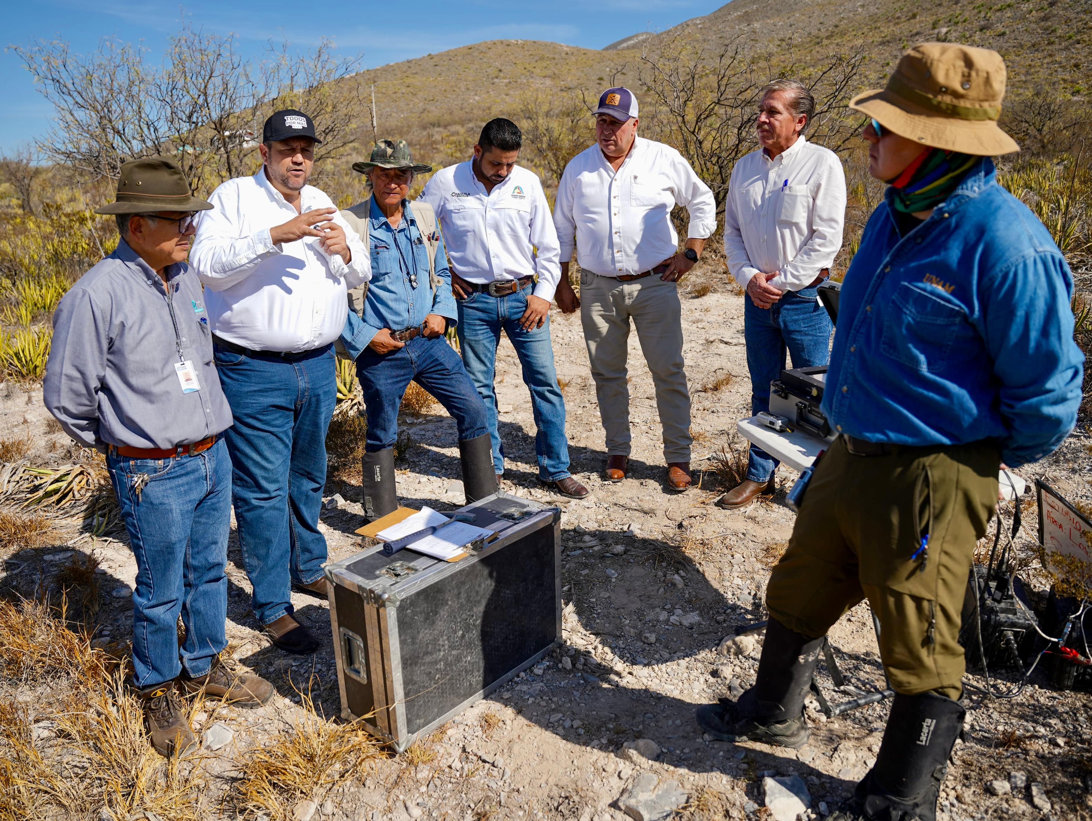 Durante el recorrido, se informó que los análisis corresponden a estudios geohidrológicos que utilizan métodos geológicos y geofísicos avanzados para conocer las condiciones del subsuelo y detectar zonas que podrían presentar probabilidad de contener agua.